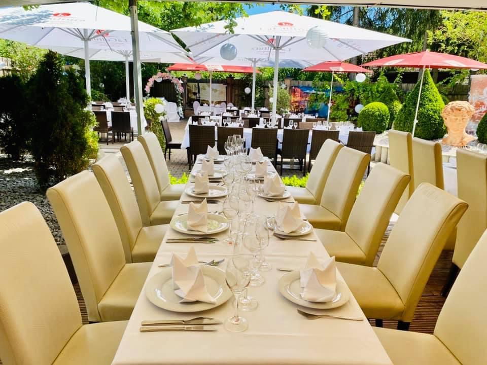 Unsere Sommerterrasse lädt Sie zu schönen Stunden bei gutem Essen und Getränken ein – mit guten Freunden oder auch allein für sich zur Entspannung. Aber auch für all Ihre Events mit vielen Gästen und unterschiedlichsten Tischarrangements ist dieser magische Ort bestens geeignet.